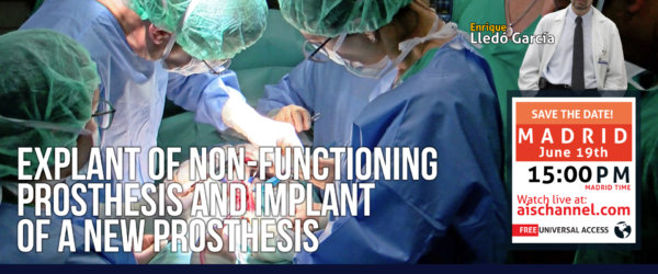 June 19th - 3pm (Madrid time) - Live Surgery: Explant of non-functioning prosthesis and implant of a new one by Dr Enrique Lledó García. Join Aischannel.com and participate in this amazing live event which will be followed all over the world!